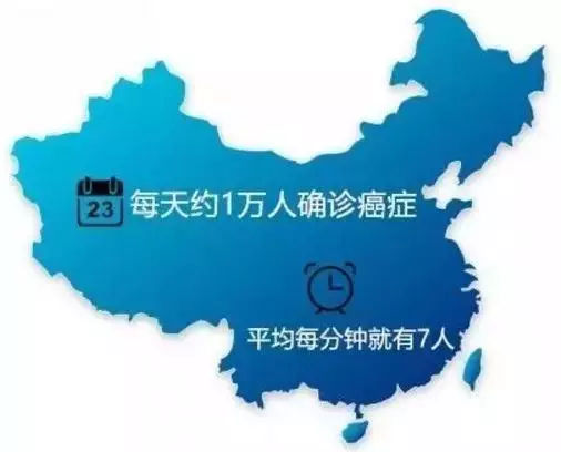 上面的数字表明,全球每100名癌症患者中,有21人是中国人,每天平均有超过1万人确诊癌症,每分钟7人患癌。