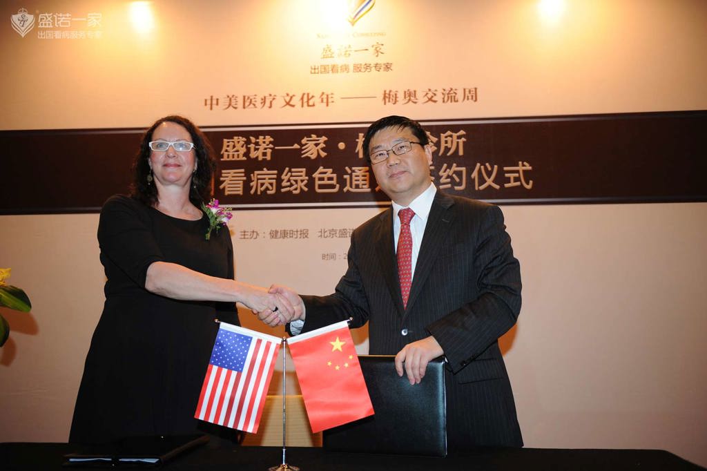 图为梅奥诊所国际转诊主任Melissa-Goodwin女士与盛诺一家董事长蔡强