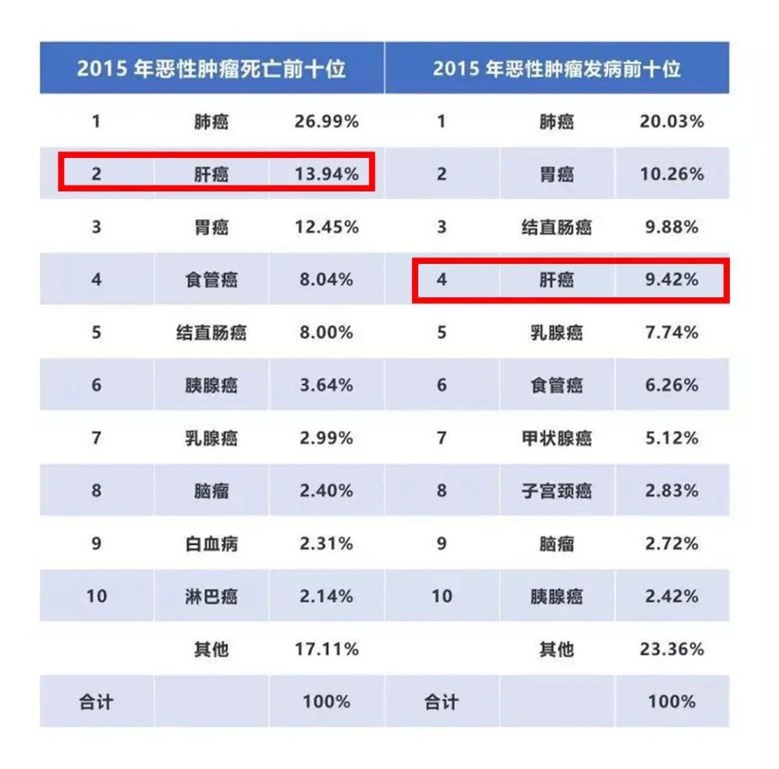 根据中国医学科学院肿瘤医院、国家癌症中心赫捷院士,全国肿瘤登记中心主任陈万青教授等在CA(A Cancer Journal for Clinicians)杂志上发表的中国癌症统计数据(《Cancer Statistics in China, 2015》)显示:肝癌在我国位于恶性肿瘤发病率第四位,死亡率第三位。