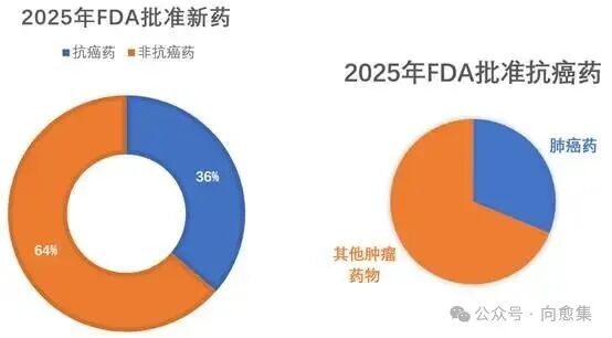 回到初始的问题:2025年美国批准的44个全新药物里,肿瘤相关约占三分之一,肺癌是醒目的主角。