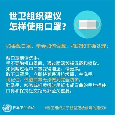 世卫组织建议怎样使用口罩?