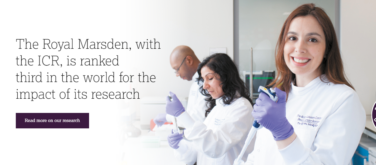 皇家马斯登及其合作伙伴英国癌症研究所(ICR),在全球癌症研究影响力方面排名前三(来源:皇家马斯登官网)