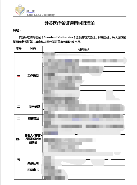 盛诺一家为客户制作的签证材料清单